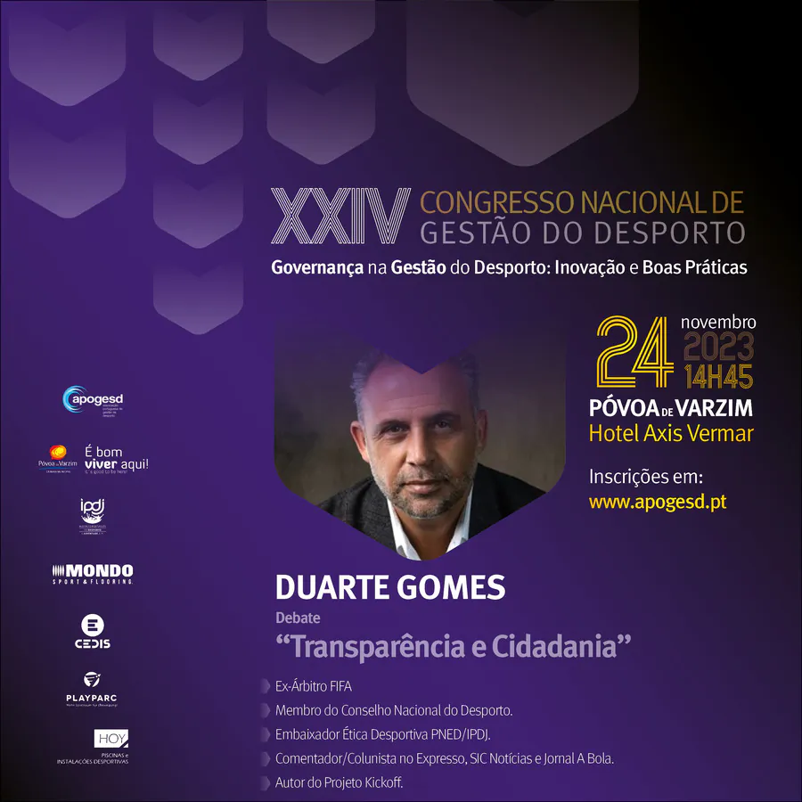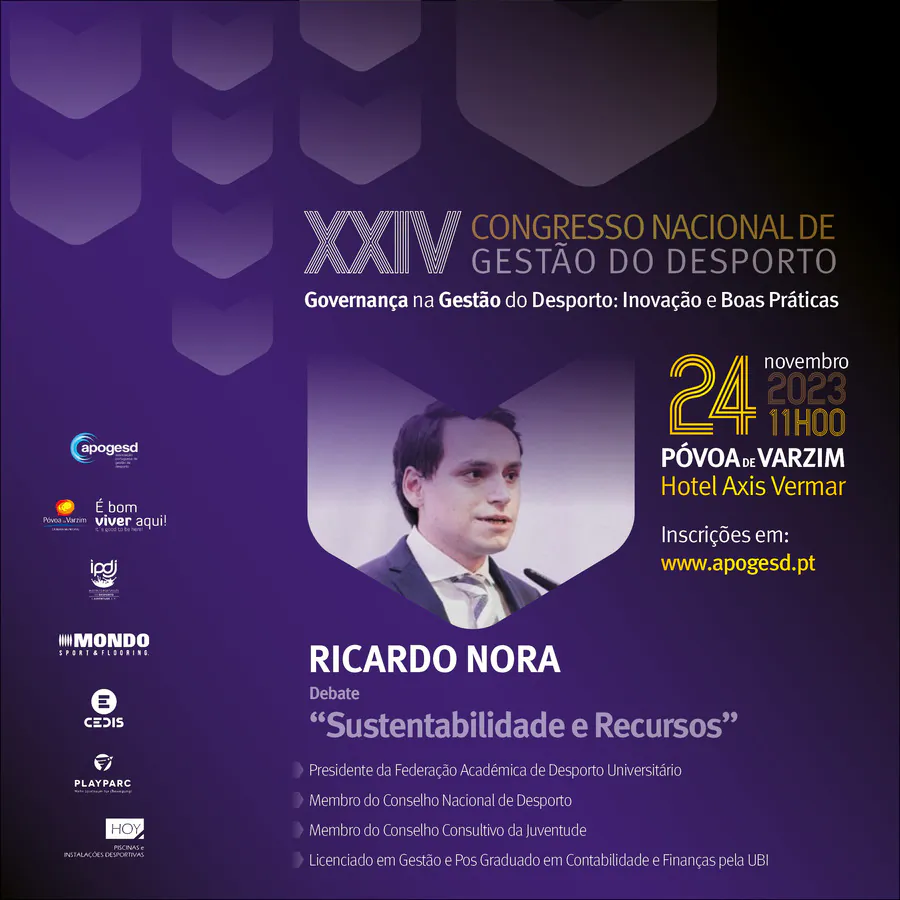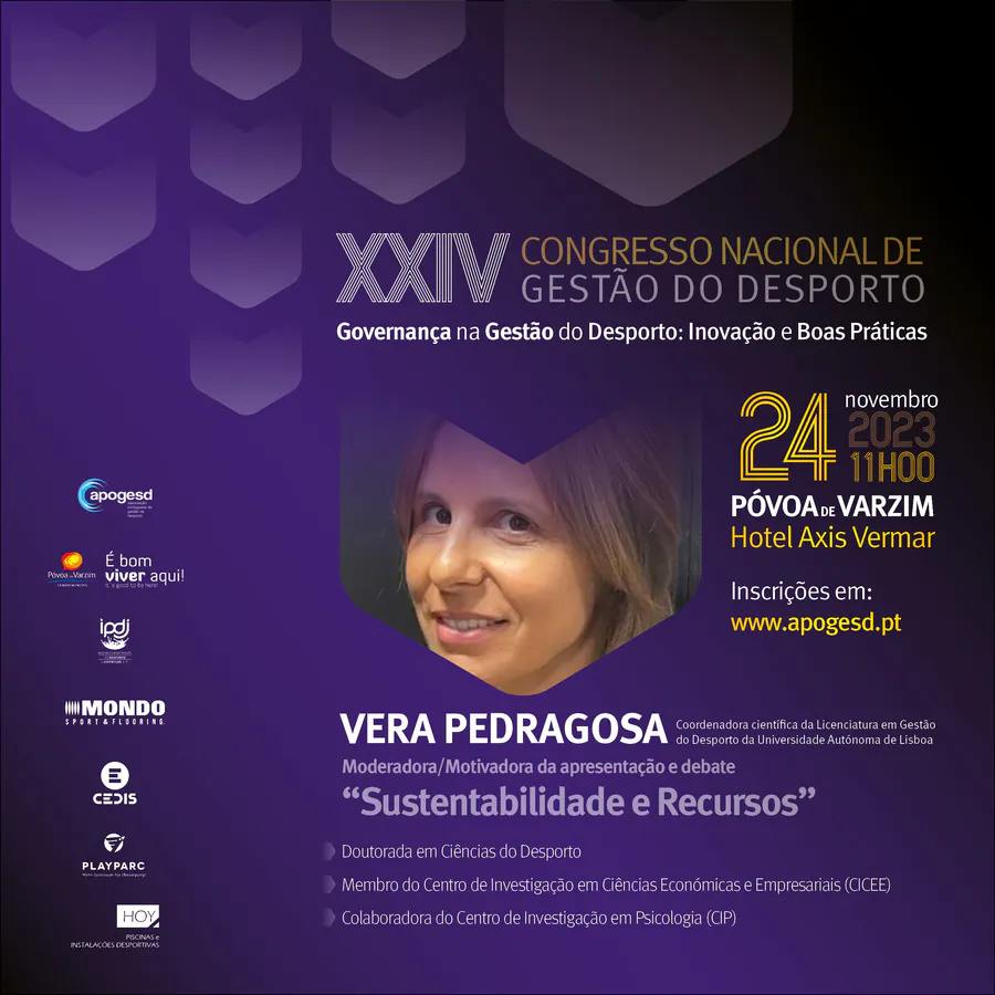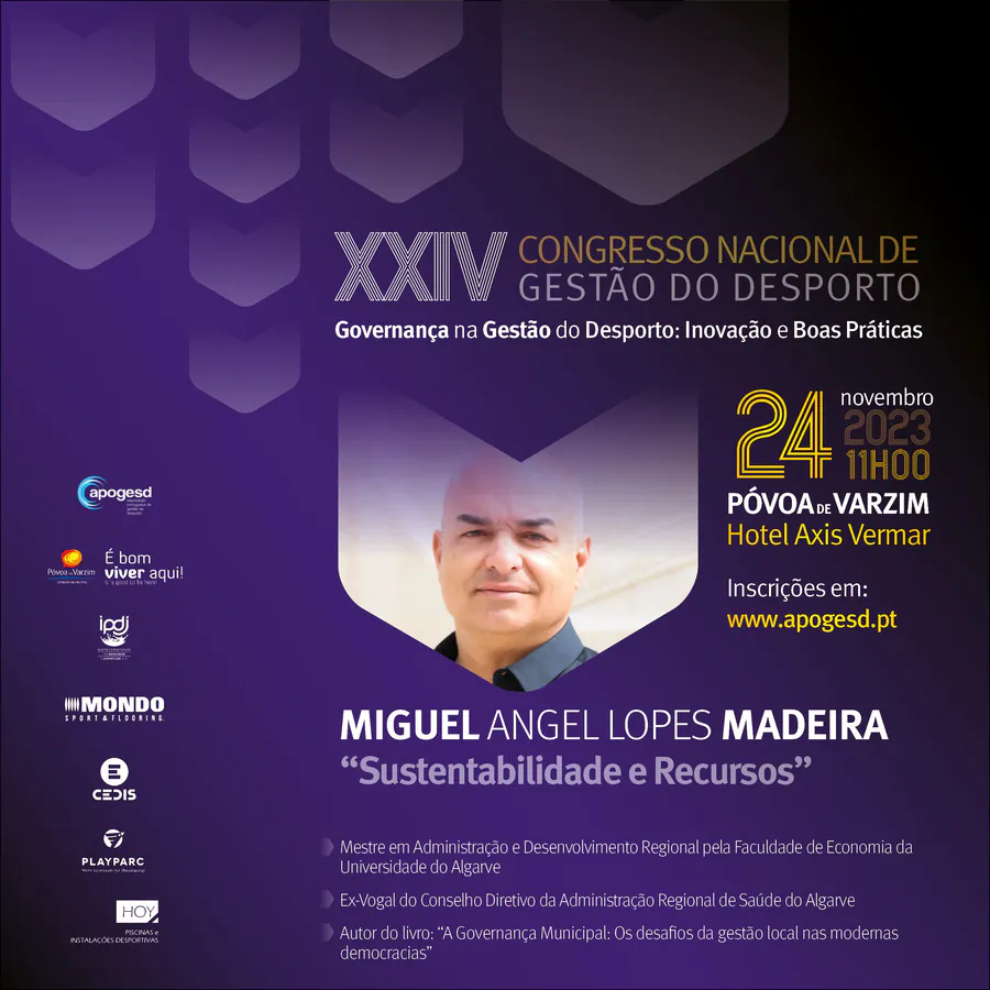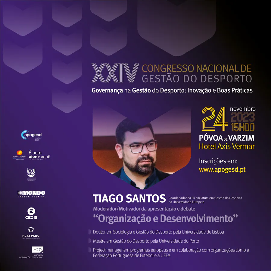 O XXIV Congresso Nacional de Gestão do Desporto, decorrerá na Póvoa de Varzim nos dias 23 e 24 de Novembro e terá como tema principal a “Governança na Gestão do Desporto: Inovação e Boas Práticas”, e como subtemas: Organização e Desenvolvimento; Sustentabilidade e Recursos; e, Transparência e Cidadania.
