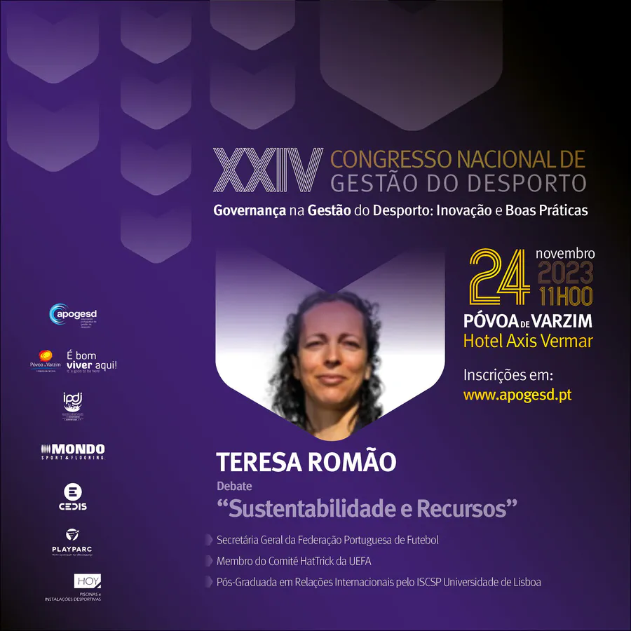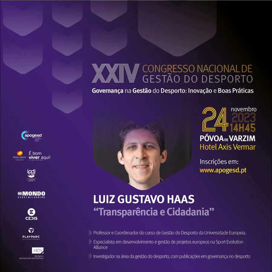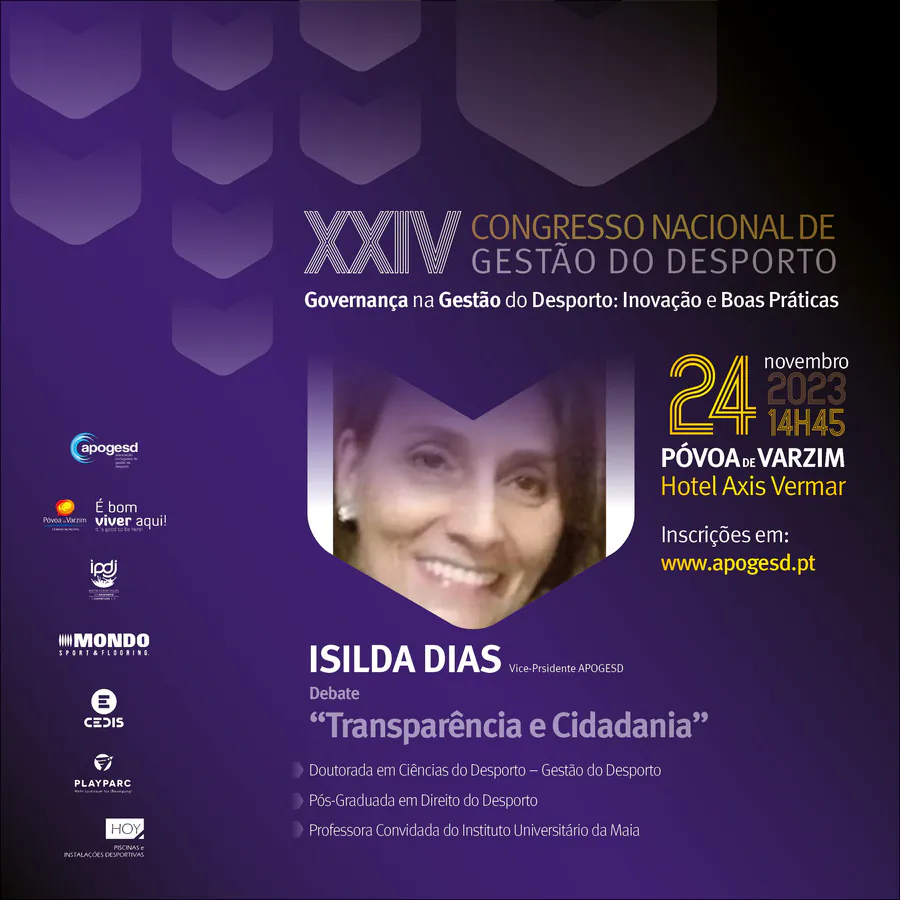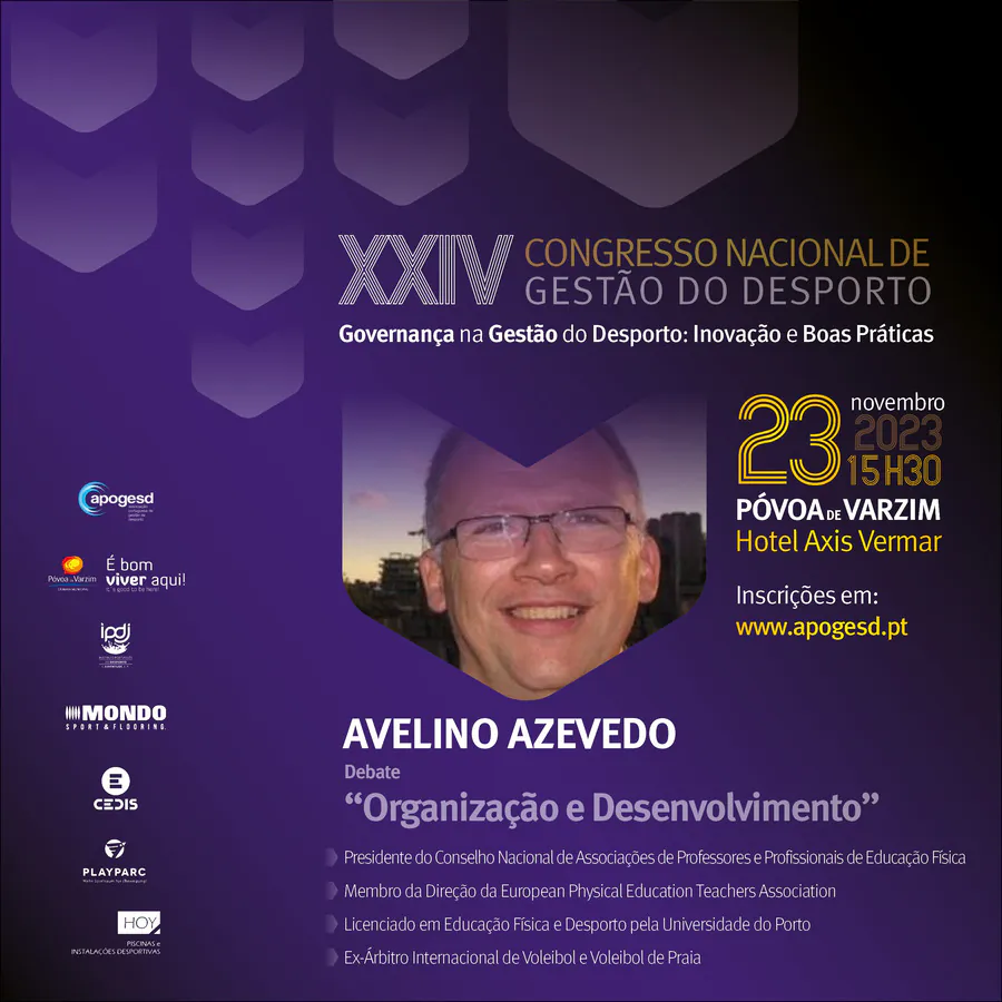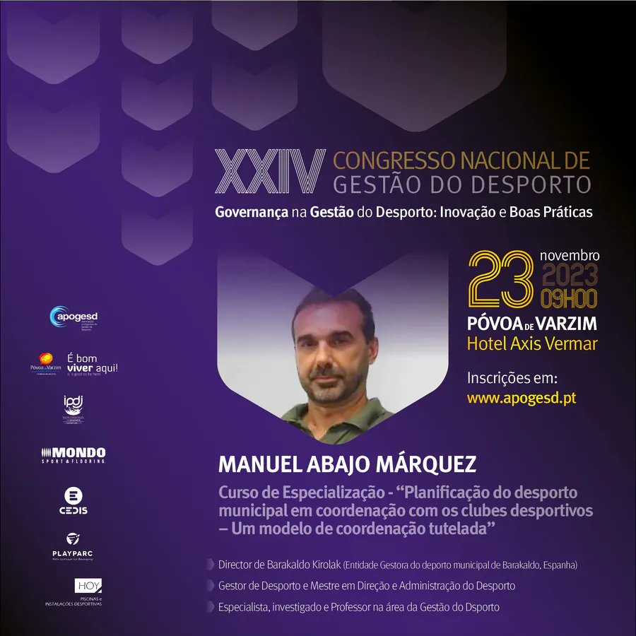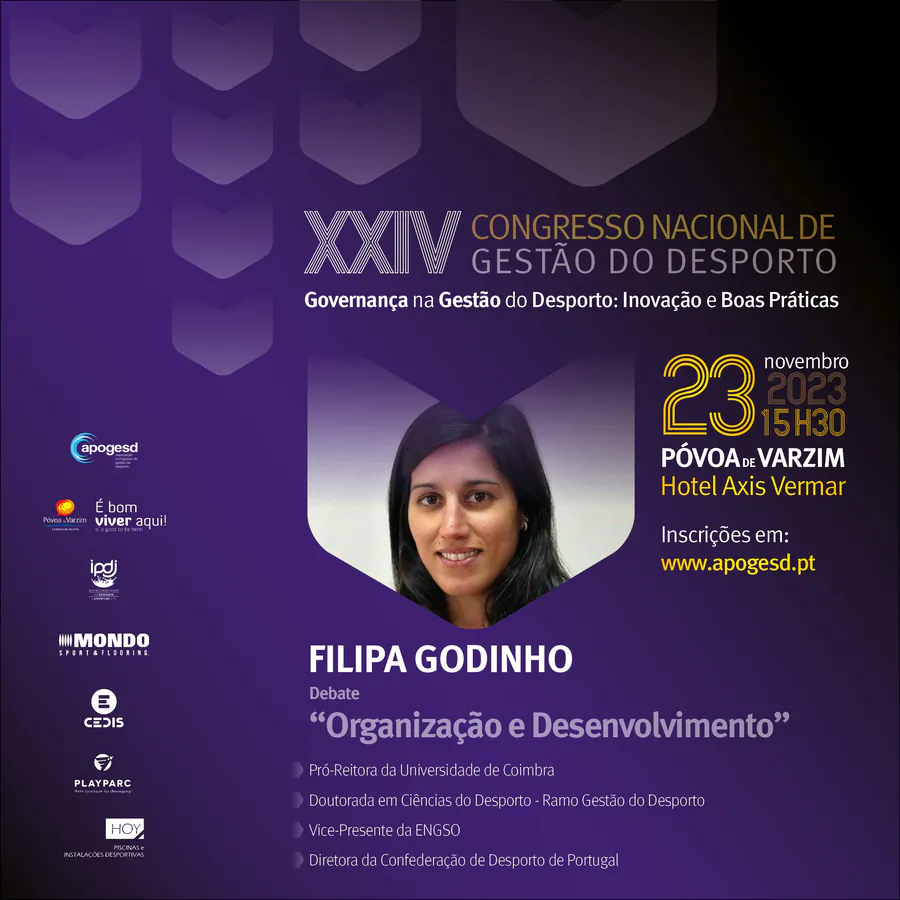 O XXIV Congresso Nacional de Gestão do Desporto, decorrerá na Póvoa de Varzim nos dias 23 e 24 de Novembro e terá como tema principal a “Governança na Gestão do Desporto: Inovação e Boas Práticas”, e como subtemas: Organização e Desenvolvimento; Sustentabilidade e Recursos; e, Transparência e Cidadania.