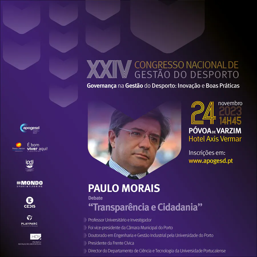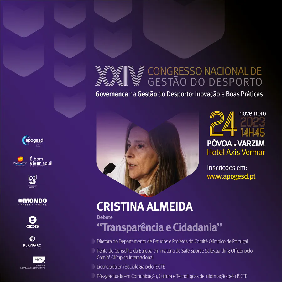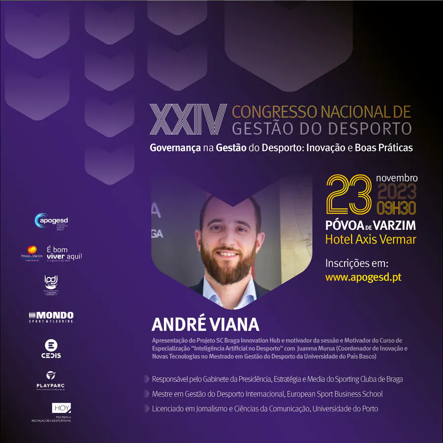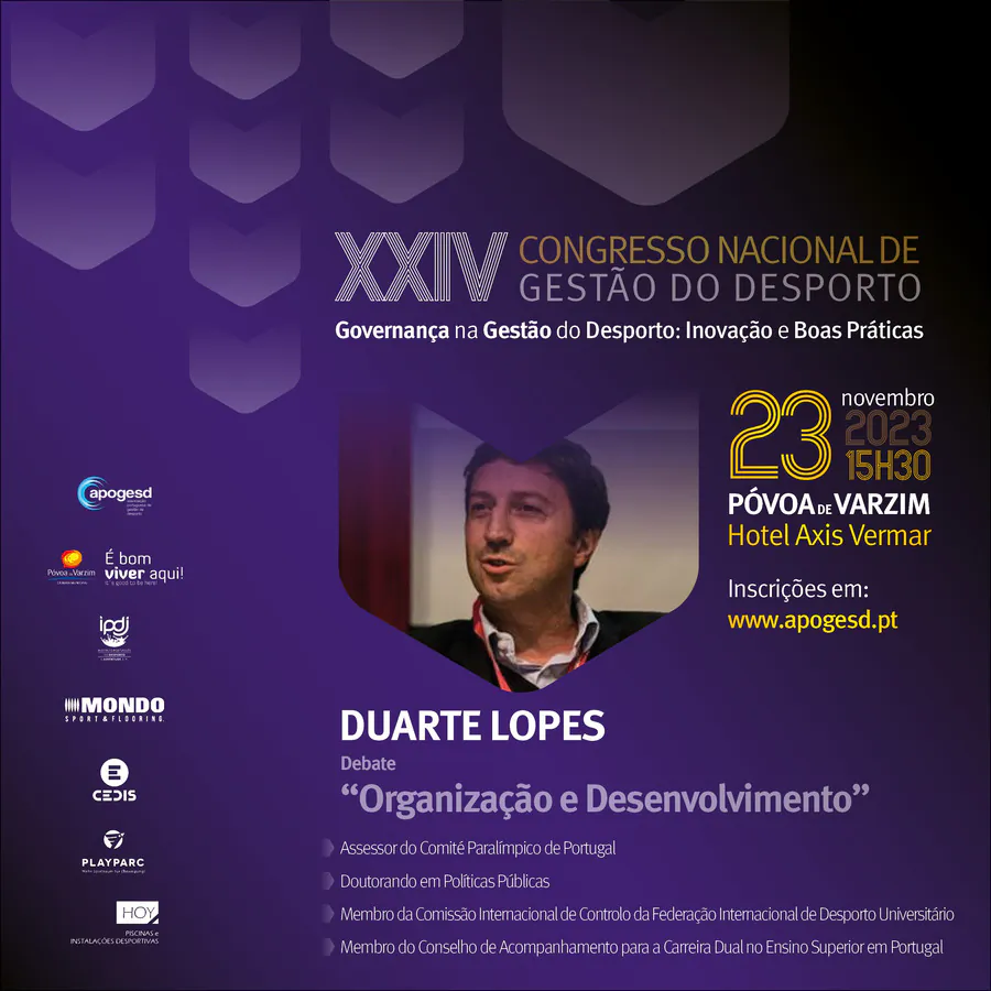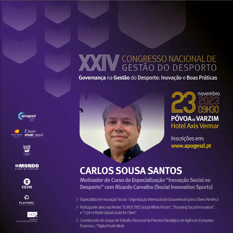 O XXIV Congresso Nacional de Gestão do Desporto, decorrerá na Póvoa de Varzim nos dias 23 e 24 de Novembro e terá como tema principal a “Governança na Gestão do Desporto: Inovação e Boas Práticas”, e como subtemas: Organização e Desenvolvimento; Sustentabilidade e Recursos; e, Transparência e Cidadania.