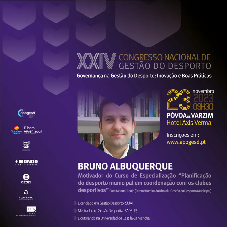 O XXIV Congresso Nacional de Gestão do Desporto, decorrerá na Póvoa de Varzim nos dias 23 e 24 de Novembro e terá como tema principal a “Governança na Gestão do Desporto: Inovação e Boas Práticas”, e como subtemas: Organização e Desenvolvimento; Sustentabilidade e Recursos; e, Transparência e Cidadania.